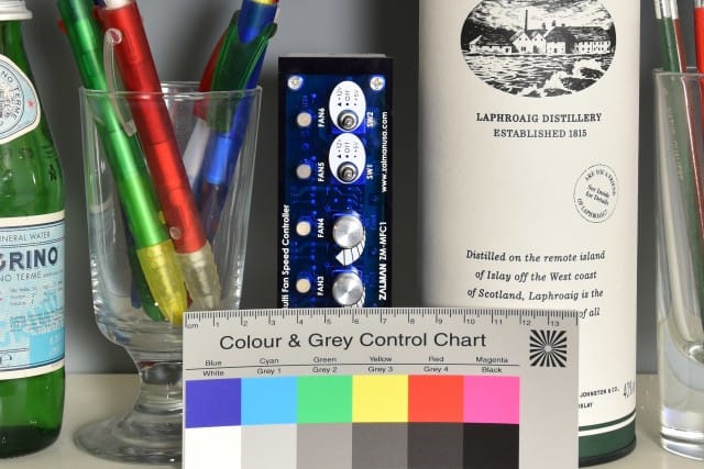 Das Bild oben zeigt den Aufbau. Die nachfolgenden Bilder zeigen jeweils einen 100-%-Crop aus den 6000 x 4000 Pixel großen Aufnahmen. Klicken Sie auf ein Bild, um den 3000 x 2000 Pixel großen Crop zu öffnen.