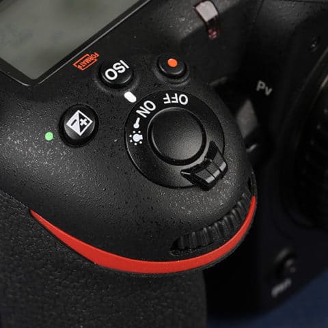 Rechts vom Sucherdach hat ein kleiner Monochrom-Statusmonitor seinen Platz. Er kann beleuchtet werden, was für eine Nikon nichts Neues ist. Neu ist dagegen, dass aber auch die Beschriftungen der Einstellelemente auf der linken Rückwandseite und auf der linken Gehäuseschulter weiß leuchten oder angeleuchtet werden. Aufnahmen in der Dämmerung oder in einer wirklich dunklen Umgebung sind dadurch viel entspannter zu machen. Das ist noch besser gelöst, als bei der Pentax K-1, die allerdings noch die Speicherkartenslots und das Bajonett beleuchtet. Auf jeden Fall: dicker Daumen hoch für die D500.