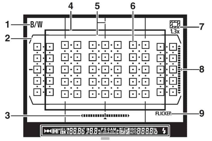 Da der Sensor der D500 kleiner ist, als bei der D5, decken die Messfelder einen größeren Teil des Bildfeldes ab und reichen bis nah an den Rand.