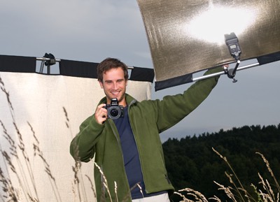 Ist das Motiv insgesamt zu dunkel, wird auch die Person im Vordergrund nicht gut zu erkennen sein. Richtet man das Hauptlicht für die Person auf einen Reflektor oder auf eine reflektierende Wand, erhält das Gesicht eine vorteilhafte, indirekte Beleuchtung. Ein weiterer Blitz wird im Hintergrund positioniert, um ihn aufzuhellen. Insgesamt entsteht so ein räumlicher Eindruck. Einen interessanten Effekt bewirkt der Einsatz eines Farbfilters vor dem Blitz, durch den der Hintergrund verschiedene Farben erhält.