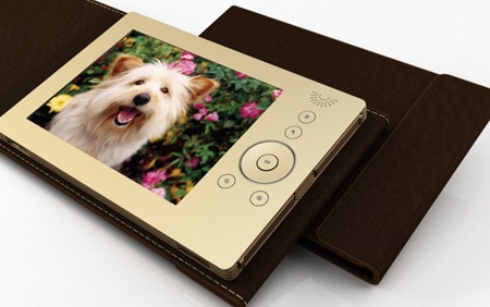 Nicht nur bei digitalen Bilderrahmen finden 8 Zoll große Panels reißenden Absatz, wenn es nach Vosonic geht, denn der Anbieter hat nun ein digitales Bilderalbum vorgestellt, das im Lederertui daherkommt, einen 4 GB großen internen Speicher besitzt und eben ein 8 Zoll großes Display vorweisen kann. Wie es beim Widescreen-Format üblich ist, besitzt das Display dabei eine Auflösung von 800 x 480 Bildpunkten.