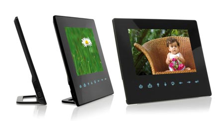NANO 7 Pro ist mit einem 7“ hochauflösenden Display (800×480 Pixel) ausgestattet und verfügt neben einer Fernbedienung über acht Touch Activated Buttons. Diese berührungsempfindlichen Bedientasten sind auf der Vorderseite des Bilderrahmens angeordnet und werden erst durch Berühren sichtbar. Über diese blau leuchtenden Tasten lassen sich alle wichtigen Funktionen spielend leicht auswählen.