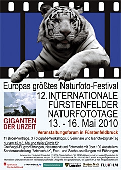 Wenn der Naturschutz und die Fotografie eine Symbiose eingehen, dann finden die Internationalen Fürstenfelder Naturfototage vor den Toren Münchens statt. Jährlich treffen sich dort beim größten Natur-Foto-Festival in Europa über 10.000 natur- und fotointeressierte Gäste aus dem In- und Ausland, um Vorträge, Seminare und Foto-Workshops zu besuchen oder am kostenlosen Rahmenprogramm teilzunehmen. Die Biodiversität, und damit der Artenschutz, steht im Vordergrund, wenn vom 13.-16. Mai 2010 die „Giganten der Urzeit“ präsentiert werden.