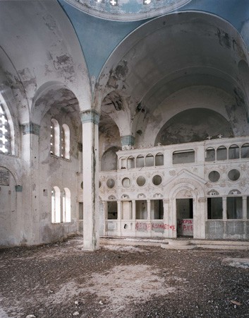 Johanna Diehls Fotoserie trägt den Titel „DISPLACE“ und entstand 2008/2009 im Rahmen eines DAAD Projekt-Stipendiums. Im Englischen bedeutet „DISPLACE“ sowohl „Vertreiben“ als auch „Ersetzen“. Nach Einzelausstellungen in Köln, Frankfurt und Berlin sind im Oldenburger bau_werk nun ihre großformatigen Arbeiten sowie eine Installation aus 16 kleinformatigen Fotografien zu sehen. Johanna Diehls Aufnahmen von sakraler Architektur zweier unterschiedlicher Glaubensrichtungen fügen sich hervorragend in die bau_Werk-Saison 2010 ein, in der es um das Spannungsverhältnis von Architektur und Kunst geht.