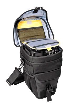 • Toploader Fototasche mit Schnellzugriff auf Kamera mit angesetzter Optik