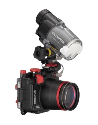 Mit den Kameras von Olympus entstehen nicht nur an Land tolle Fotos und Videos. Auch unter der Meeresoberfläche sind sie mit einem entsprechenden Unterwassergehäuse ganz in ihrem Element. Ob Fotograf, Taucher oder Abenteurer, Olympus hat für jeden Bedarf das perfekte Equipment, um die Welt unter Wasser sicher zu entdecken: Ambitionierte Anwender tauchen mit der PEN oder der kompakten XZ-1 in bis 40 m dichten Unterwassergehäusen (PT-EP03 oder PT-050) ab. Abenteurer, die gern mit wenig Gepäck unterwegs sind, sollten sich die TG-810 ansehen. Diese Kamera ist auch ohne zusätzliches Gehäuse bis 10 m wasserdicht. Für alle, die tiefer tauchen, steht das ebenfalls bis 40 m wasserdichte PT-051 zur Verfügung. Unterwasserblitze, Halterungen, Makro-Konverter, schwimmende Schlaufen und vieles mehr runden das Angebot ab.