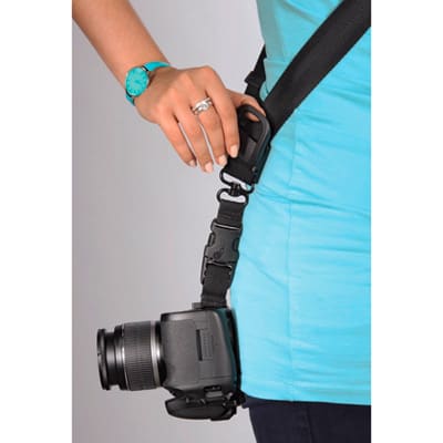 Der Gurt wird einfach über eine Platte am Stativgewinde der Kamera befestigt und lässt sie blitzschnell von der Trage- zur gewünschten Aufnahmeposition bringen ohne den ganzen Kameragurt bewegen zu müssen. Durch den „Slider“ gleitet die Kamera über das bis zu einem maximalen Umfang von 150 Zentimeter stufenlos verstellbare Sicherheitsband und lässt sich dann per Sliderbremse mit nur einem Handgriff an beliebiger Stelle fixieren. Die 360°-Rotary-Verbindung ermöglicht das Drehen der Kamera ohne diese vom Gurt zu lösen.