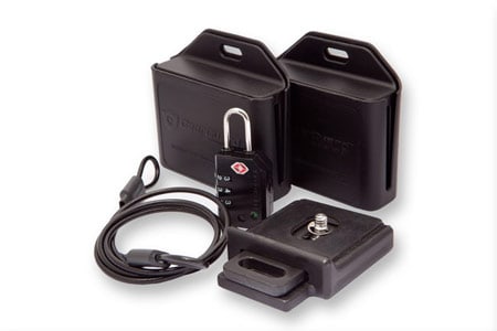 Diese sind als Basic- und als Pro-Kit erhältlich und sichern DSLR-Kameras,Videokameras, wertvolle Objektive und Fototaschen vor Langfingern. Zum GearGuard Sortiment gehören der GearGuard Camera Body Lock und der GearGuard Bag Lock. Außerdem beinhaltet die GearGuard-Serie den Objektivschutz LensLock, das Gear Guard Sicherheitskabel aus gehärtetem Stahl sowie ein Zahlenschloss.