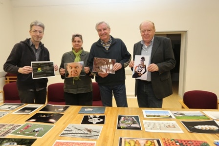 Der 17. bundesweite DVF Themenwettbewerb 2012/13 ist entschieden. Die Juroren (von links nach rechts) Bernd Mai, MFIAP, DGPh, Dortmund; Eva-Maria Bieseke, Fotogruppe 98 DVF Berlin; DVF-Präsident Willy Borgfeldt und Ewald Steenblock MFIAP, Neumünster wählten aus 496 Print-Bilder zum Thema „Fremdkörper“ aus.