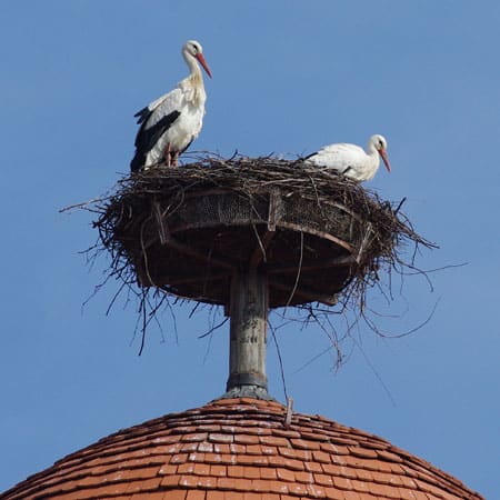 Gestern sahen wir zum ersten Mal in diesem Jahr einen großen Vogel im Tiefflug über den Redaktionsräumen: die Hammelburger Störche sind aus dem Winterurlaub zurück – der Sommer kann kommen! Leider war es gestern ein bisschen spät für ein Foto, dafür standen die beiden aber vorhin mustergültig Modell!