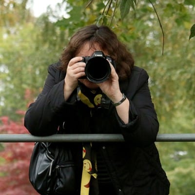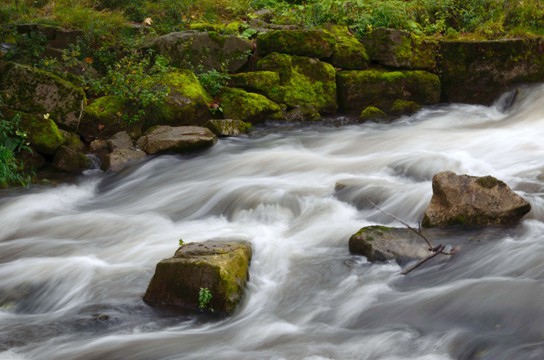 Eine kleine Stromschnelle forderte zudem zu Langzeitbelichtungen, und einige Tropfen, in denen man die bunten Herbstblätter dahinter sehen konnte, zu kleinen Makroexperimenten heraus. (Ach ja: Es regnete nicht während dieses Ausfluges). Es ließ sich dabei nicht ganz vermeiden, dass man vor das Objektiv eines anderen Teilnehmers / einer anderen Teilnehmerin geriet.