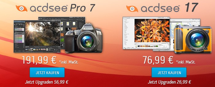 ACDSee Pro 7: Alles was man braucht, um seine Bilder schnell zu perfektionieren. Mit Digital Asset Management und allen wesentlichen Aufgaben des fotografischen Arbeitsflusses, vom Import bis zur fertigen Präsentation, in einer kompletten Lösung. Preis: 191,99 €