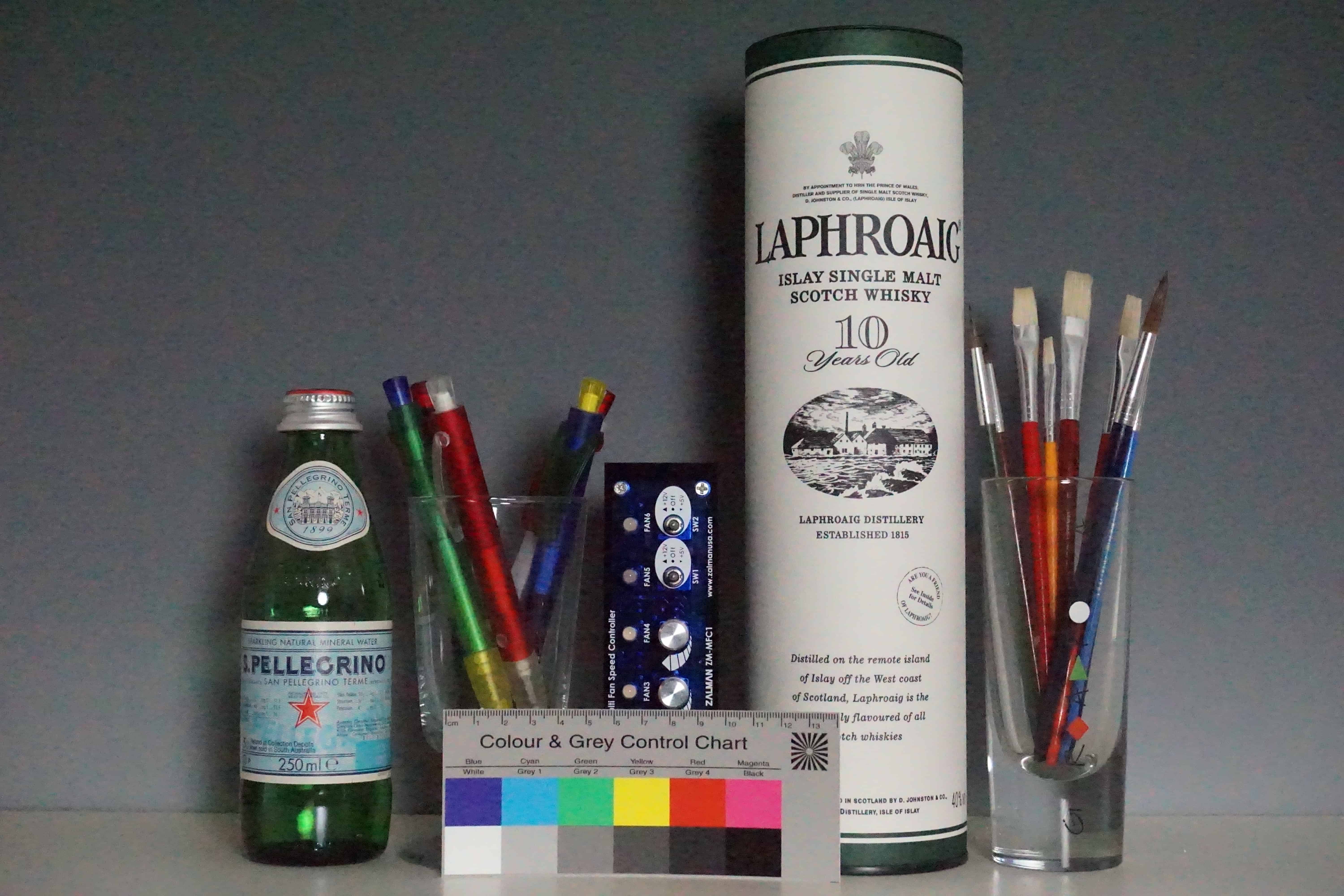 Die Bilder entstanden wie immer (sofern das mitgelieferte Objektiv sich entsprechend einstellen lässt) mit ca. 50 mm Brennweite (hier: eingestellt 35 mm) bei Lichtwert 7. Die Aufnahmen entstehen immer mit Mehrfeldmessung, Zeitautomatik (Blendenvorwahl) und automatischem Weißabgleich. Ein Vergleich verschiedene ISO-Reihen zeigt also auch, wie Belichtungssteuerung und Weißabgleich auf unsere Standardsituation reagieren.