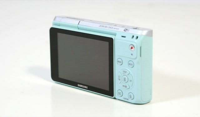Bei der Bedienung setzt Samsung auf vergleichsweise wenige Tasten. Neben dem Auslöser sitzen auf der rechten Schulter der Hauptschalter und eine dedizierte Taste für die WiFi-Funktionen der Kamera. Ruckseitig gibt es eine 4-Wege-Wippe mit zentralem Bestätigungsfeld. Rund um diese Elemente sitzen vier weitere Tasten für die Wahl der grundlegenden Funktionen. In Kombination mit dem übersichtlichen Menü geht die Bedienung so problemlos von der Hand. Seinen Teil trägt dazu auch das Touchscreen-Display im 3-Zoll-Format bei, das von vielen Nutzern sicherlich als primäres Navigationselement genutzt wird. Die Qualität der Abbildung auf den Monitor ist gut, allerdings würden wir uns bei direkter Sonneneinstrahlung eine etwas höhere maximale Leuchtkraft wünschen. Passend zum aktuellen „Selfie-Zeitalter“ kann das Display um 180° nach oben geschwenkt werden.