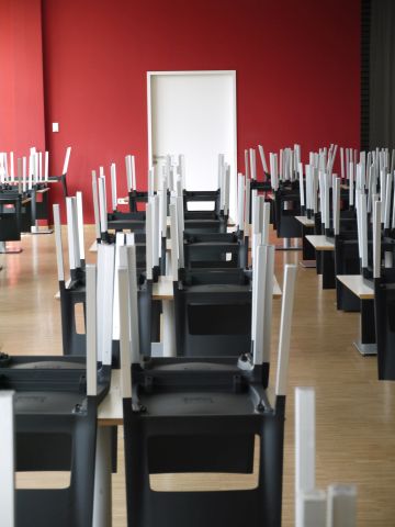 und auch nebenan sind die Stühle noch hoch gestellt.