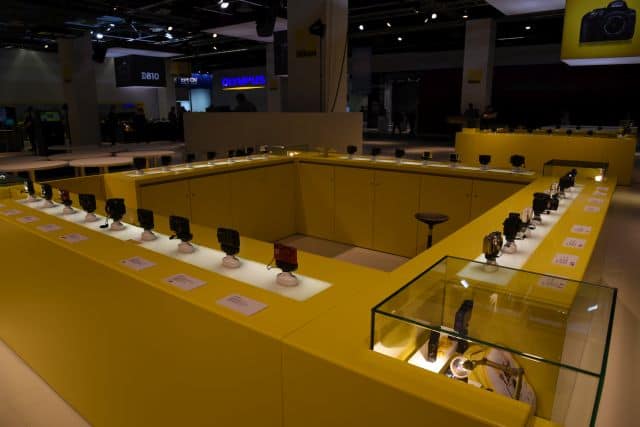 Gleich um die Ecke der Nikon Stand, natürlich ganz in Gelb.