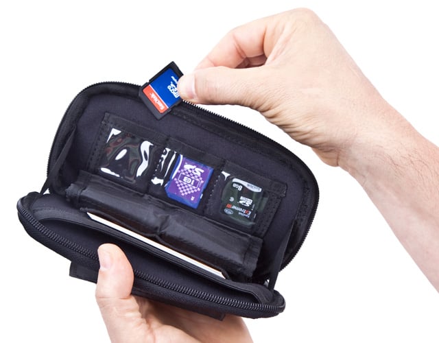 Das zweite neue Produkt ist der Memory Card Organizer für 6 CF- und 3 SD-Karten – eine merkwürdige Kombination, da CF-Karten ja auf dem Rückzug sind. Außer den Karten kann man noch ein Smartphone bis zur Größe eines iPhone 5 in einem gepolsterten Fach unterbringen und es gibt noch zwei weitere Taschern für Kleinkram. Preis 35,99 €