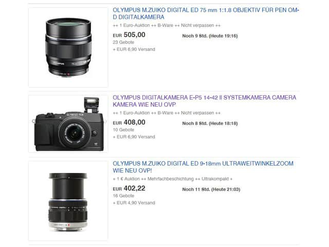Aktuell werden auf eBay im Olympusmarket Kameras und Objektive des Herstellers angeboten, bei denen man den ein oder anderen Euro sparen kann. In den Artikelbeschreibungen, die wir probehalber aufgerufen haben, steht jeweils: Vom Hersteller generalüberholt: Artikel wurde durch einen vom Hersteller zugelassenen Händler professionell generalüberholt und