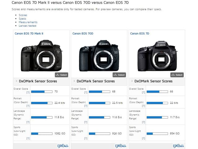 Die renommierte Seite DxOMark hat die Canon EOS 7D Mark II getestet und sagt, dass sie nur wenig besser ist, als die EOS 7D. Die neueste Canon bekommt auch weniger Punkte als z. B. die Nikon D7100, die Sony Alpha 77 II oder auch die Pentax K-3.