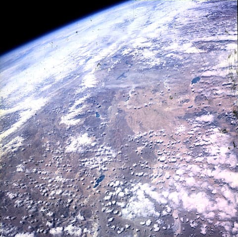 Walter „Wally“ Schirra, ein begeisterter Amateurfotograf, kaufte 1962 in einem Fotogeschäft in Houston eine Hasselblad 500c mit Zeiss Planar 2,8/80 mm.