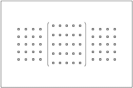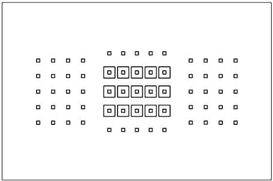 Die 65 Sensoren sind in drei Blöcken angeordnet. Der mittlere umfasst 5×5 Sensoren. Die beiden Blöcke rechts und links sind aus 4 Sensoren nebeneinander und 5 Sensoren übereinander aufgebaut, aber nicht ganz so hoch wie der mittlere Block.