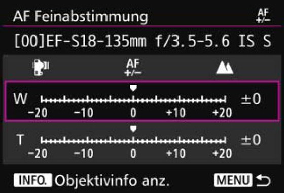 Man kann zudem bei Bedarf den Fokuspunkt in kleinsten Schritten verlagern, um Probleme mit Front- oder Backfokus zu beheben. Die AF-Feinabstimmung kann generell oder für einzelne Objektive durchgeführt werden.