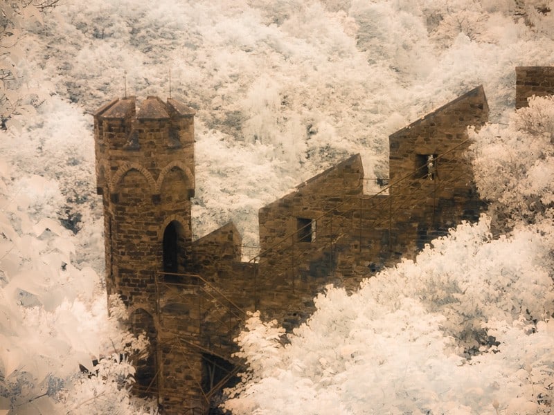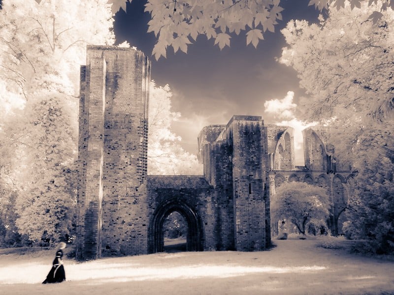 Besser ist es, eine umgebaute Kamera zu erwerben oder eine Kamera umbauen zu lassen. Beim Umbau wird der Sperrfilter entfernt und durch einen IR-Filter ersetzt. Dabei kann man zwischen Filtern für verschiedene Wellenlängen wählen. Rotfilter zwischen 550 und 700 nm zeichnen noch ein wenig Farbinformation auf, sodass sich verschiedene Fehlfarbeneffekte über den Weißabgleich oder im Nachbearbeitungsprozess ermöglichen lassen. Ein 830-nm-Filter lässt reines IR-Licht passieren und kann damit nur für Schwarz/Weiß-Aufnahmen genutzt werden. Hier ist der Wood-Effekt auch am stärksten ausgeprägt. Man hat also die Qual der Wahl.