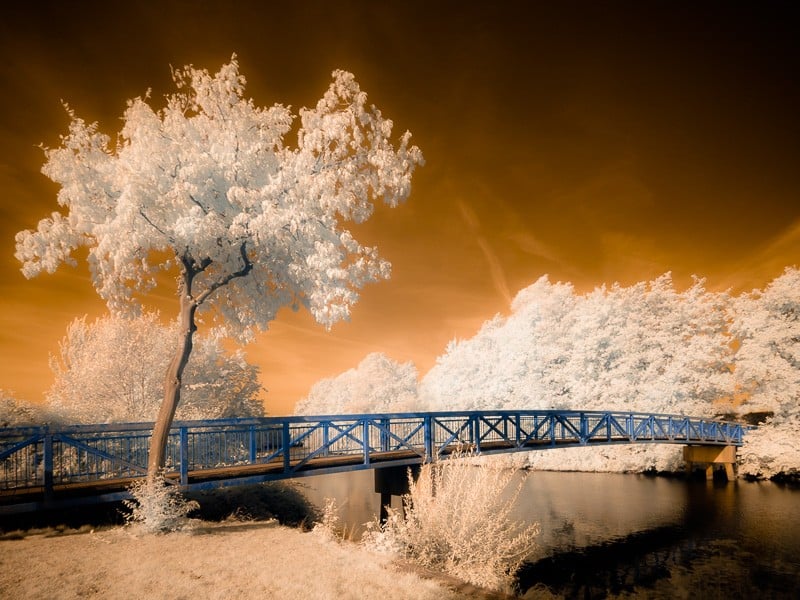 Bilder, die mit einer IR-Kamera entstehen, sehen aus wie von einer anderen Welt. Alle Pflanzen werden weiß, blauer Himmel und dessen Wasserspiegelung werden sehr dunkel abgebildet. Wolken kontrastieren sehr stark mit dem Himmel und Objekte, die sich im Grünen befinden, betten sich dunkel, wie in Watte gehüllt, in ihre Umgebung. Gebäude erscheinen ungewöhnlich, weil Oberflächen unterschiedlicher Baumaterialien das IR-Licht ganz verschieden reflektieren oder absorbieren. Menschliche Haut bekommt einen weichen, hellen Teint und Gesichter wirken blass und unheimlich. Die Bilder erhalten ein subtiles, diffuses Leuchten, das jedem Motiv einen starken träumerischen, märchenhaften oder gespenstischen Effekt verleiht.