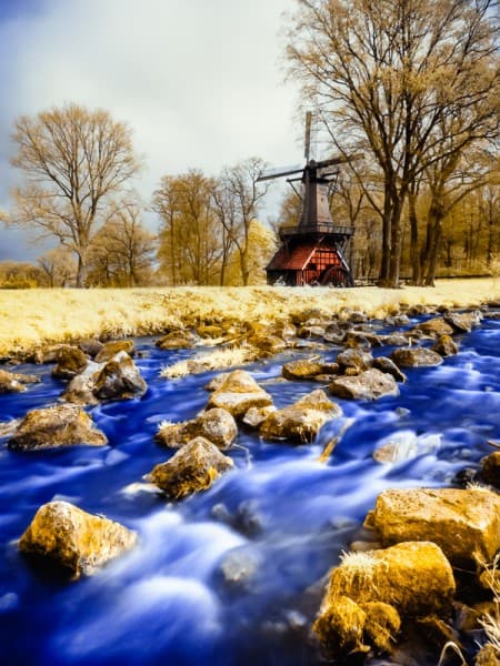 Eine beliebte Nachbearbeitung für die Fehlfarbengestaltung ist der sogenannte Kanaltausch. Dazu vertauscht man im Kanalmixer beim Rot- und Blaukanal die jeweiligen Rot- und Blauanteile und erhält unter Umständen einen starken Komplementärkontrast. Die Nachbearbeitung einer IR-Aufnahme ist ein wesentlicher Teil der Bildgestaltung. Dabei ist es grundsätzlich egal, wie die resultierenden Bilder aussehen, denn für kein IR-Bild ist ein normaler Maßstab gültig. Es handelt sich um eine Sichtweise, die mit den allgemeinen Sehgewohnheiten nur wenig zu tun hat. Und das ist meiner Ansicht nach ein Garant für unheimlich kreative Bilder.