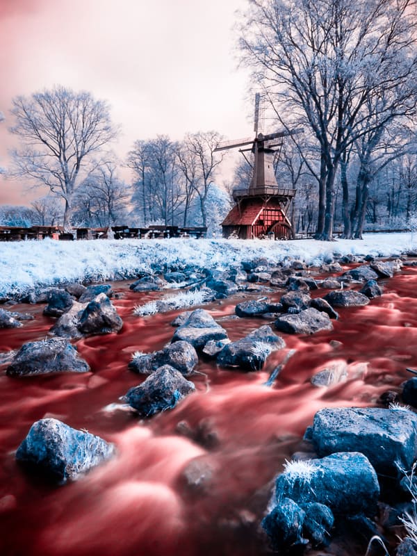 Eine beliebte Nachbearbeitung für die Fehlfarbengestaltung ist der sogenannte Kanaltausch. Dazu vertauscht man im Kanalmixer beim Rot- und Blaukanal die jeweiligen Rot- und Blauanteile und erhält unter Umständen einen starken Komplementärkontrast. Die Nachbearbeitung einer IR-Aufnahme ist ein wesentlicher Teil der Bildgestaltung. Dabei ist es grundsätzlich egal, wie die resultierenden Bilder aussehen, denn für kein IR-Bild ist ein normaler Maßstab gültig. Es handelt sich um eine Sichtweise, die mit den allgemeinen Sehgewohnheiten nur wenig zu tun hat. Und das ist meiner Ansicht nach ein Garant für unheimlich kreative Bilder.