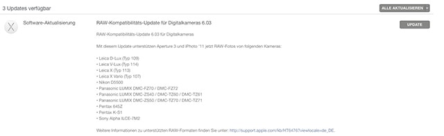 In den kommenden Tagen wird bei Apple die Wachablöse von iPhoto/Aperture hin zur neuen Photos-App erwartet, anbieten würde sich der Apple Event am kommenden Montag. Bis dahin hat Apple aber noch einmal ein neues RAW-Update für OS X veröffentlicht, das natürlich auch für die neue Photos App gelten wird.