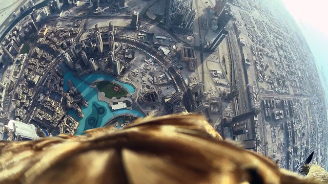 Zu diesen Zwecken wurde der Kaiseradler Darshan mit einer Action Cam Mini ausgestattet und flog am 14. März von der obersten Spitze des Buji Khalifa hinunter zu seinem Coach Jacques Oliver Travers.