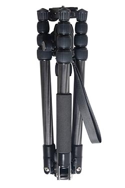 Der Kugelkopf mit Wasserwaagen erleichtert das genaue Ausrichten des Statives auf unebenen Flächen. Mit der vorhandenen Halteschlaufe kann das Stativ praktisch getragen werden oder am Rest der Ausrüstung fixiert werden. Im Lieferumfang enthalten ist eine gepolsterte Stativtasche.