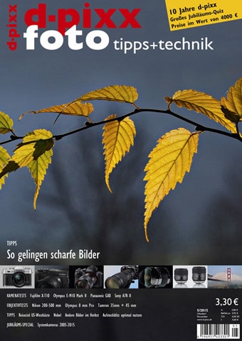 Hinter dem neu gestalteten Titelbild erwartet Sie ein Rückblick auf 10 Jahre Systemkameras und dazu – es ist schließlich unser Jubiläumsheft – ein Preisrätsel. Unter allen, die unsere 19 Fragen richtig beantworten, verlosen wir Preise im Wert von ingesamt über 4000 €! Welche Preise zu gewinnen sind, sehen Sie in Kürze hier auf der Homepage! Und hier noch ein kleiner Überblick über die anderen Themen: