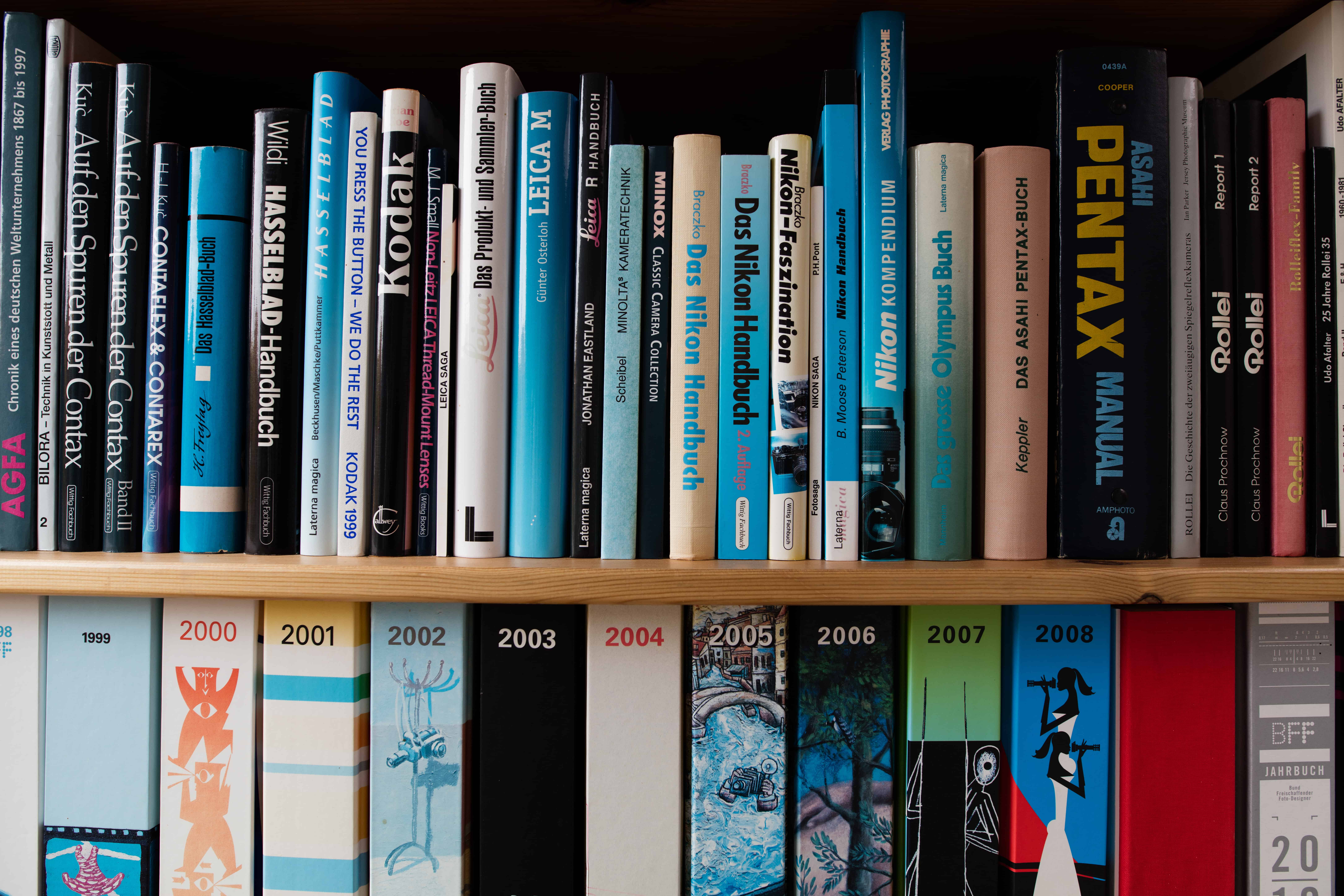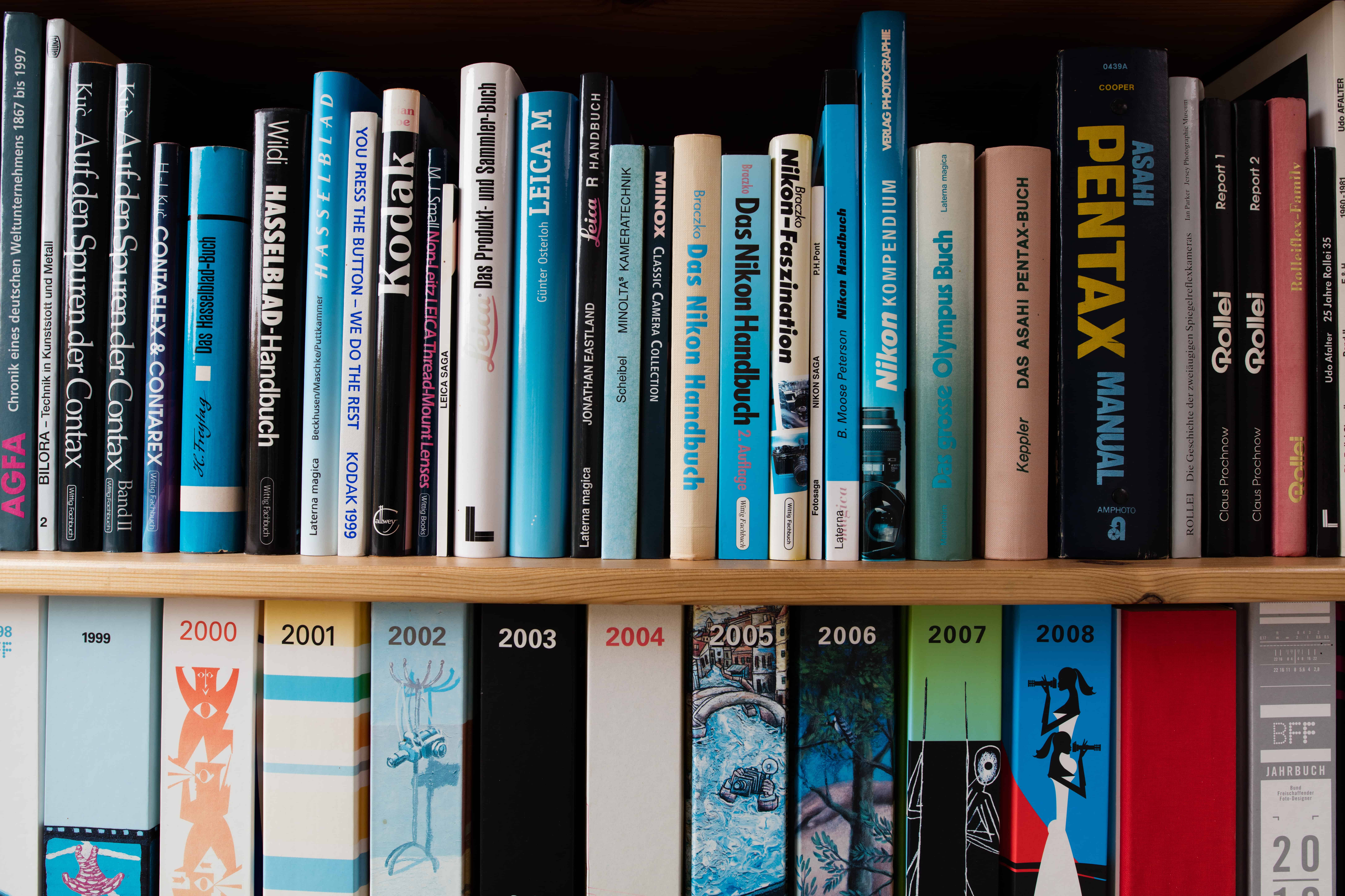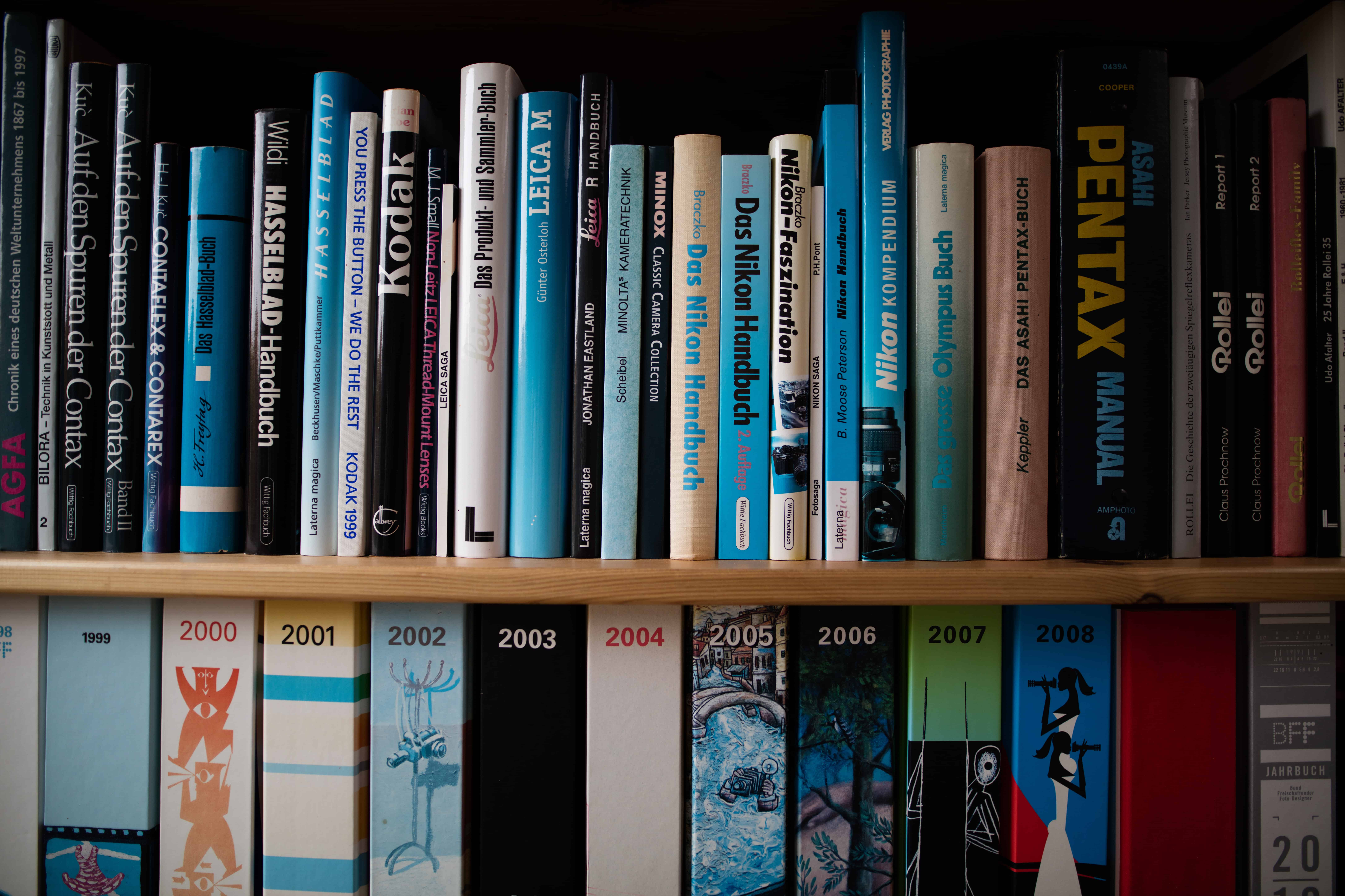 An den Büchern ist lediglich zu sehen, wie sich die Schärfe von der Bildmitte zum Bildrand ändert, wenn man die Blende von ganz offen bis zur kleinsten Öffnung schließt.