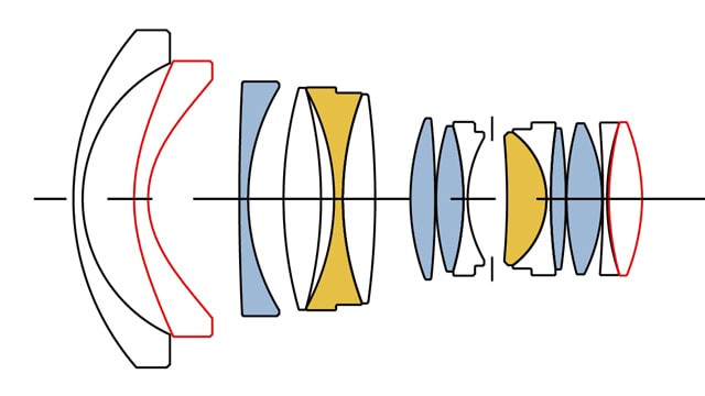 Das Objektiv ist aus 11 Gruppen in 15 Linsen aufgebaut. Dazu gehören 2 Asphären, von denen eine als Besonderheit zwei asphärische Oberflächen aufweist, die nicht einem Ausschnitt aus einer Kugeloberfläche entsprechen. Zusätzlich kommen zwei FLD- und fünf SLD-Linsen zum Einsatz. Diese Glassorten weisen besonders niedrige Zerstreuungswerte auf. Eine weitere Maßnahme, mit der die Bildqualitöt verbessert werden soll, ist eine spezielle Mehrschichtvergütung.