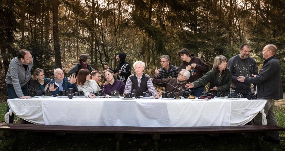 Die Szene zeigt im Original das letzte Abendmahl von Jesus mit seinen Jüngern. Unsere Interpretation zeigt uns in nachgestellten Posen der Protagonisten und symbolisiert auf diese Weise unsere Umgangsweise mit dem uns selbst gestelltem Thema.