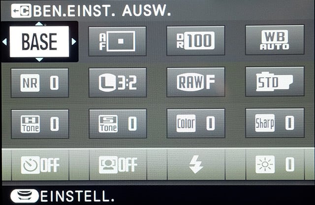 Neu ist, dass man die Einstellung der ISO-Werte ins Zeitenrad integriert hat. Man zieht den Rand des Rades hoch und kann nun in einem kleinen Fenster Empfindlichkeiten von ISO 200 bis 12.800 einstellen, dazu kommen als Erweiterungen ISO 100 und ISO 25.600 und ISO 51.200. Die Art, wie man die Empfindlichkeit einstellt, erinnert sehr an Kameras der 1970er Jahre – vom riesigen Bereich wagte man damals aber nicht einmal zu träumen.