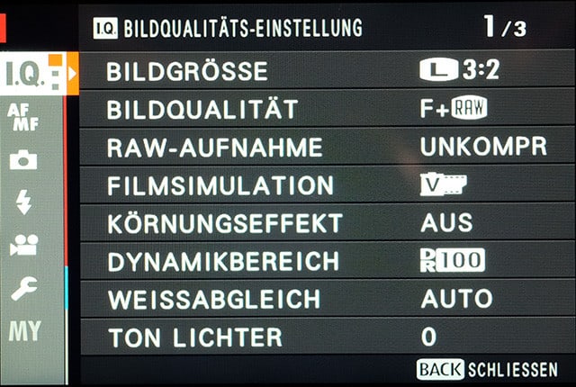 Der Rückwandmonitor ist höher auflösend und größer als bei der ersten X-Pro: 1,62 Mio Dots sind auf einem Schirm mit einer Diagonale vom 3“ untergebracht. Auch hier gib es am Bild nichts zu mäkeln. Die neue Größe hat eine geänderte Anordnung der Tasten zur Folge hat. Kurz nach dem Wechsel zwischen beiden Modellen wird man vielleicht das ein oder andere Mal daneben greifen, aber das wird sich schnell geben.