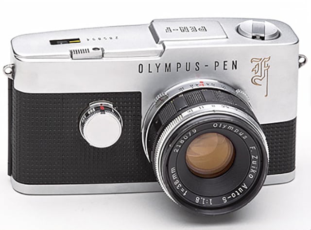 Die erste Olympus PEN kam 1959 auf den Markt, eine Halbformatkamera. Sie sah, wie auch die nächsten Modelle, so aus, wie Sucherkameras dieser Zeit eben aussahen. Frischen Wind in das Design brachte 1963 dann die PEN-F, die von Yoshihisa Maitani entworfen worden war. Sie genießt heute Kultstatus.