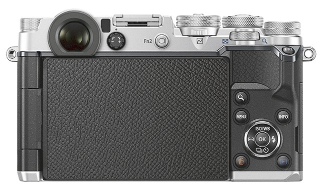 Der Sucher ist (von hinten gesehen) in der linken oberen Ecke untergebracht. Der Blick fällt auf einen Monitor mit der hohen Auflösung von 2,36 Mio. Dots. Er zeigt die bei EVFs üblichen ca. 100 % des späteren Bildes bei einer Vergrößerung von 0,62x @ [KB]. Das ist ein sehr guter Wert, kommt aber nicht an die 0,74x [@KB] heran, womit etwa die OM-D E-M5 Mark II aufwarten kann. Das kleine Einstellrad für den Dioptrienausgleich liegt neben dem Okular.