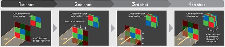 Zum einen als Tiefpassfilter-Simulator, da auf einen physischen Tiefpassfilter verzichtet wird und in seltenen, kritischen Situationen Moiré entstehen könnte. Durch minimale Bewegungen des Sensors kann dies vermieden werden.