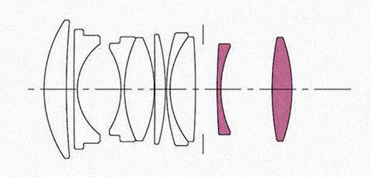 Das Objektiv ist aus 9 Linsen in 7 Gruppen aufgebaut. Für das vordere Linsenelement verwendet Sigma ein besonderes Glas, das Brechungsindex und Farbzerstreuung positiv beeinflussen soll. Dazu kommen ein einseitig und ein doppelseitig asphärisches Linsenelement.