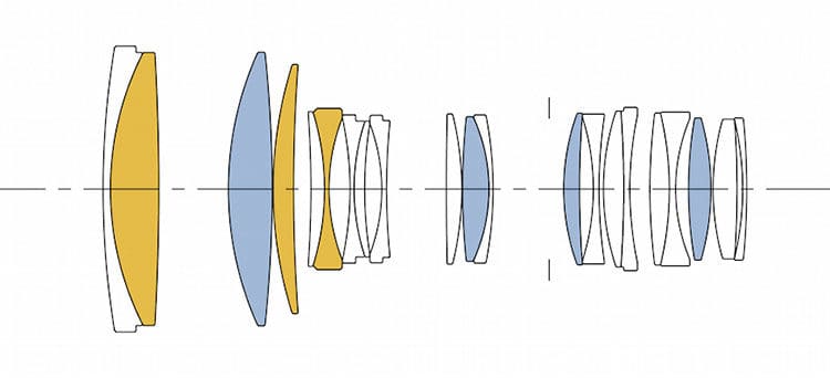 Der optische Aufbau besteht aus 21 Linsen in 15 Gruppen. Darunter sind drei FLD- und mehrere SLD-Glaselemente, die durch besondere Brechungs- und Zerstreuungseigenschaften zu einer weitestgehenden Eliminierung von Farblängs- und -querfehlern beitragen sollen.