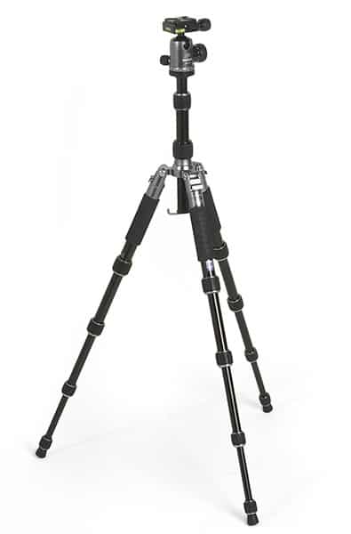 Basis des Kits ist das Reisestativ 2go , das als Tiltall-Stativ mit Beinen ausgestattet ist, die um 180° nach oben geschwenkt und an die Mittelsäule angelegt werden können. Daraus ergibt sich ein sehr geringes Packmaß von gerade mal 31,5 cm – inklusive Kugelkopf BH-07, der zum Kit gehört. Das Packmaß und das geringe Gewicht von nur rund 1320 g (komplett) macht es im Sinne des Wortes leicht, das Stativ immer dabei zu haben, was bei Aufnahmen mit langen Brennweiten, im Nahbereich, bei wenig und sehr wenig Licht gelungene, unverwackelte Aufnahmen ermöglicht.
