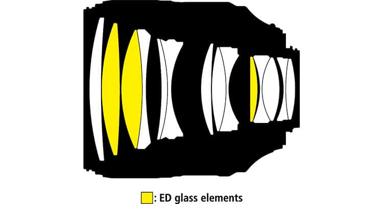 Das Objektiv ist aus 14 Linsen (davon 3 ED-Linsen) in 9 Gruppen aufgebaut. Die Länge wird mit 106 mm angegeben, der Durchmesser mit 94,5 mm. Das Gewicht liegt bei 985 g. Es werden Filter mit einem Durchmesser von 82 mm gebraucht.