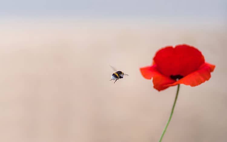 Es ist sehr schön zu sehen, dass der Nachführ-AF der K-1 der Hummel folgen konnte. Außerdem kommt das schöne Bokeh des 100er Macro gut heraus.