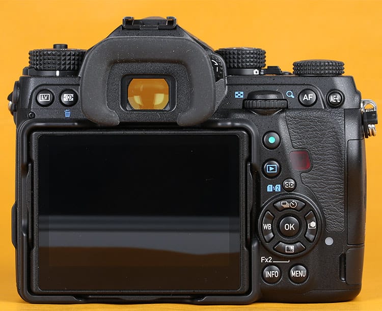 Außer Einstellelementen ist auf der Rückwand auch der große Farbmonitor der K-1 zu finden. Er hat eine Diagonale von 3,2“ und eine Auflösung von 1,037 Mio. Dots. Das ist zwar kein Schritt nach vorne, aber sehr gut. Bilder und Menüs werden klar und knackscharf angezeigt, was auch an der Gapless-Technik liegt – es gibt keine Zwischenräume zwischen den Bildpunkten. Bei hellem Umgebungslicht gibt es zunächst einmal die typischen Probleme, die man auch von anderen Monitoren kennt, bis man die Monitorhelligkeit anpasst und die Sichtbarkeit der Anzeige dadurch verbessert. Das fällt sowohl im LV-Betrieb wie auch bei der Betrachtung aufgenommener Bilder angenehm auf.