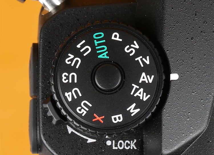 Apropos versehentliches Verstellen: Gut gelöst ist dieses Problem beim wuchtigen Betriebsartenwählrad auf den linken Schulter des Gehäuses. Man kann es per Knopfdruck arretieren und wieder freigeben, aber auch dafür sorgen, dass es immer frei beweglich ist.