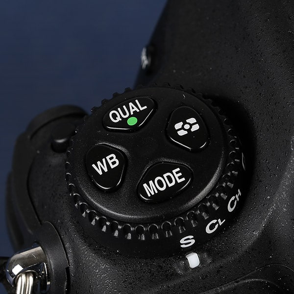 Zwischen Einzelschuss, langsamer und schneller Serie wählt man, indem man das normalerweise verriegelte Einstellrad unter den vier Tasten auf der rechten Gehäuseschulter dreht, wie man es von den großen Nikons gewohnt ist. Entsprechend kann man hier auch die Quiet-Modi für Einzel- und Serienaufnahmen wählen. Ein Vorteil gegenüber den normalen Modi ist da, aber nicht berauschend. Interessant ist, dass man im Q-Einzelbild-Modus durch das Loslassen des Auslösers bestimmt, wann der Spiegel in die Ausgangspostion zurückkehrt – z. B. nicht gerade dann, wenn die Braut „Ja“ sagt.
